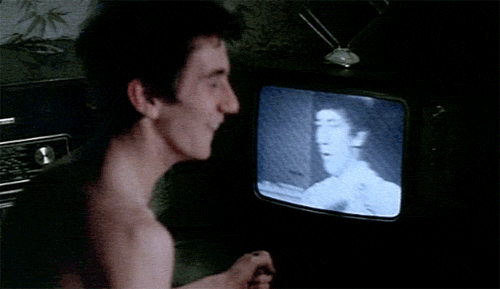 | Ace Face interpretato da Sting e Jimmy (Phil Daniels) in Quadrophenia sul cellulare della polizia si scambiano una sigaretta |